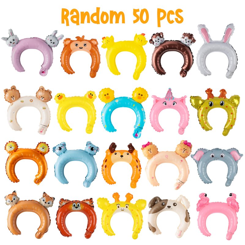 - [Our Package] 50pcs animal inflatable hair hoops (25 kinds), 72pcs animal stickers (4 sheets), 10pcs straws, portable, easy to pack and inflate, soft thick material, auto-sealing, no leaks, safe and harmless to children, size both well suit for kids and adult, please remember that not to over inflated the balloon headbands which may cause pop.