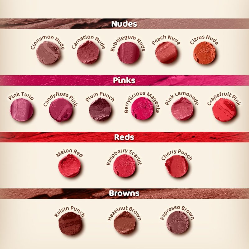 Finding the right lipstick is like finding a BFF. We’ve made it easy! Meet your match - Mamaearth Moisture Matte Longstay Lipsticks are enriched with the natural goodness of Avocado Oil and Vitamin E. With a lightweight formula, the lipstick nourishes your lips and seals in the moisture for up to 8 hours. Take your pick from 9 vibrant & high-intensity matte shades that stay on your lips for up to 12 hours, without smudging. That’s not all, they’re Made Safe Certified, which means no toxins and no nasties, just dollops of color and care. Go and say yes to the right one (or two)!