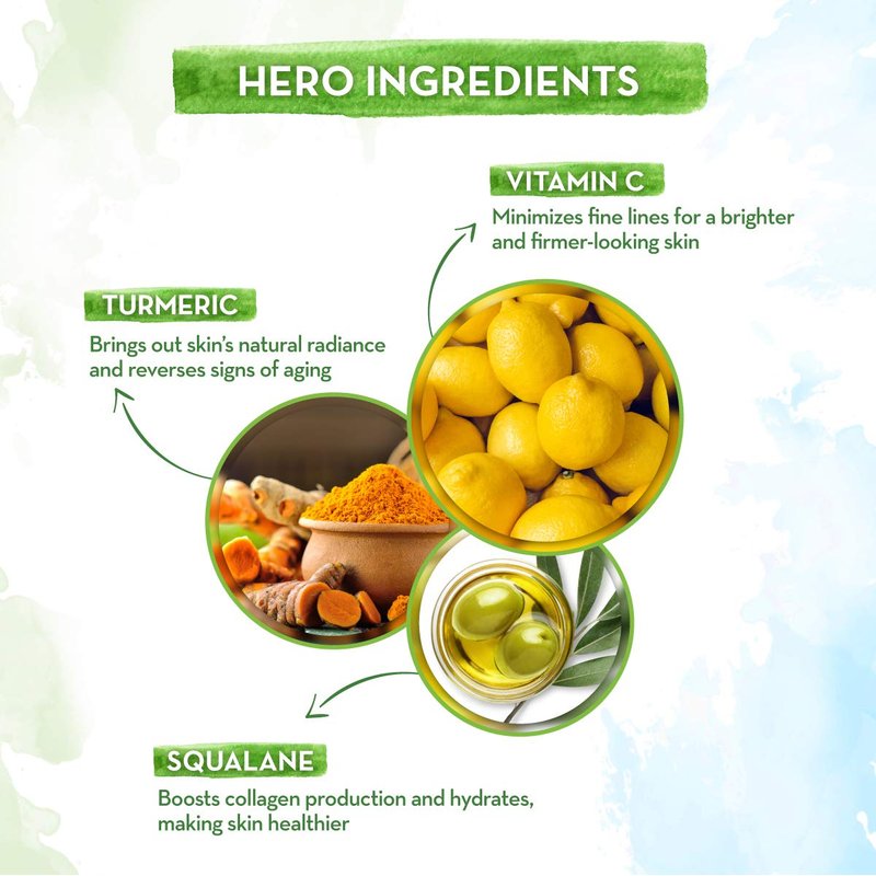 - GIVES YOUR FACE A RADIANT GLOW: Since ages, Turmeric has been one of the most used kitchen ingredients for homemade as well as cosmetic skincare products for instant & long-lasting, brightened, glowing skin. The power of turmeric in this face serum gives your skin a radiant glow.