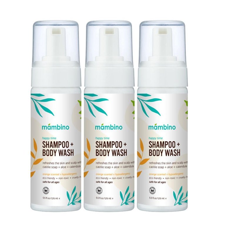 Mambino Organics Happy Time Shampoo & Body Wash for Kids 3 Pack - Hypoallergenic, Plant-Based, Eco-Friendly Body and Hair Cleanser for Sensitive Skin - Calendula & Orange 5.5floz