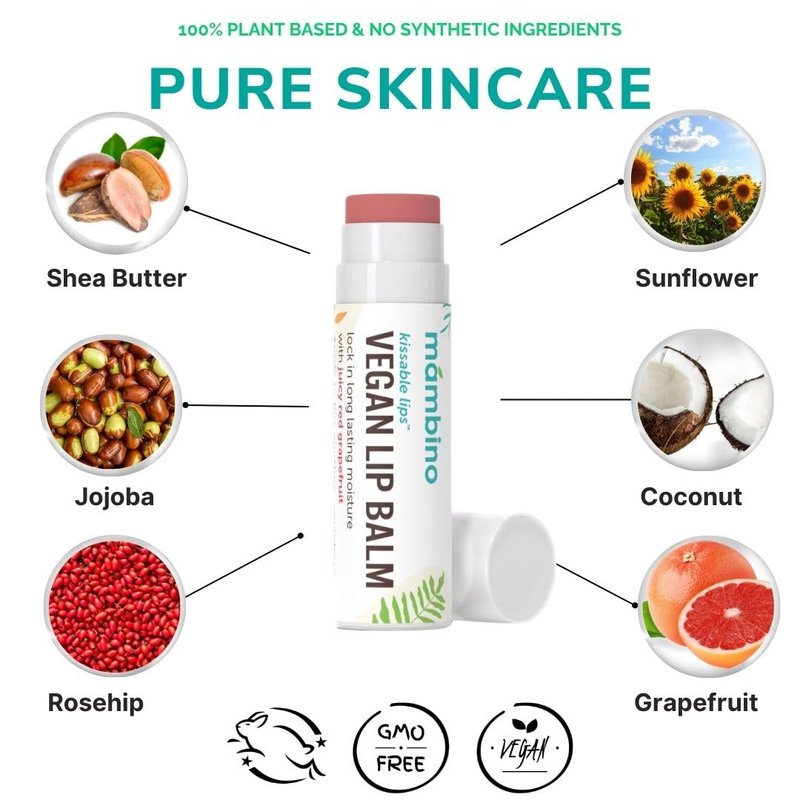 - Kissable lips couldn't be more kissable with this amazingly rich, all natural botanical lip balm with delicious red grapefruit. It deeply moisturizes, renews and protects dry and chapped lips, keeping them moist and supple, without causing dependency. Lips stay soft and moisturized for hours. Great for sensitive lips too.