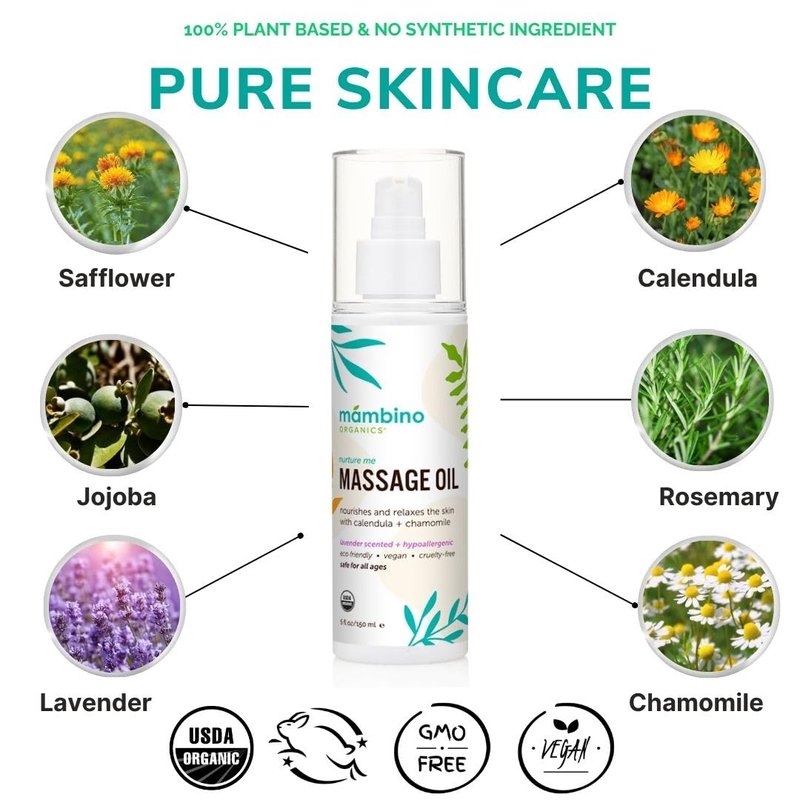 - SOOTHING AROMAS FOR A RELAXING MASSAGE – Help your baby, child and even yourself drift off to sleep with the help of natural lavender organic massage oil for the entire family. The scent of this massage oil has a relaxing aroma and soothing quality.