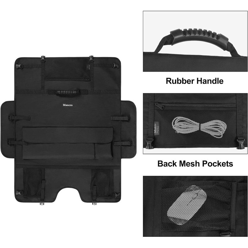 - 【Multiple Pockets】Design with a large front pocket and 3 back mesh pockets for organizing computer peripherals, such as keyboard, mouse, cords, trackpad, mouse pad, wires, hard drive, headphones, etc.