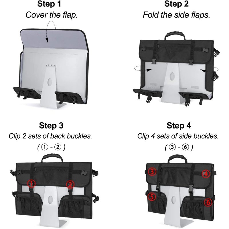 - 【Easy to install】This iMac carrying case features 6 adjustable buckles on the back, which can be adjusted to fit your computer better. So that you can put your computer monitor in the case within seconds.