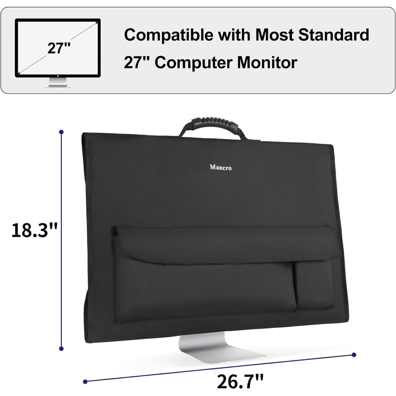 - 【27" iMac Case】The monitor case is specially designed as a travel carrying bag or a monitor dust cover compatible with 27" iMac Desktop Computer or other 27" screens. Dimension: 26.7"L x 18.3"H.