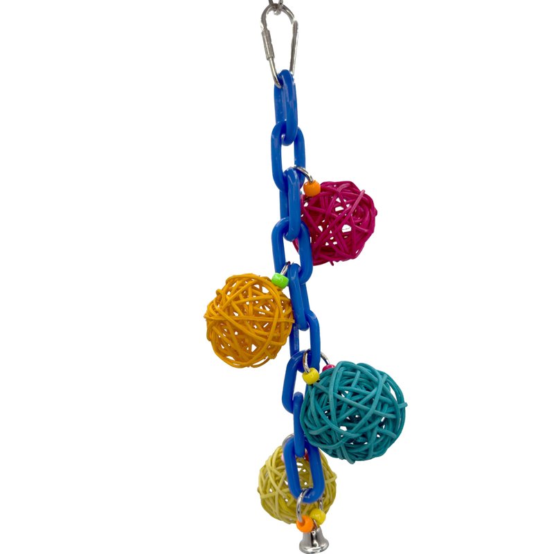 - COLORFUL CHAIN AND VINE BALLS - The colorful plastic chain is great for small pets to climb on. Dangling from it are 4x colorful vine balls. These natural rattan balls are easy for pets to chew.