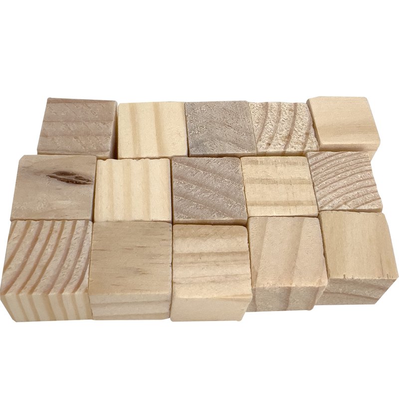 - Each pack includes (15) ready to play with unfinished wood cubes. The cubes are all cut the same small size. The cubes are lightweight making it easy for pets to manipulate them.
