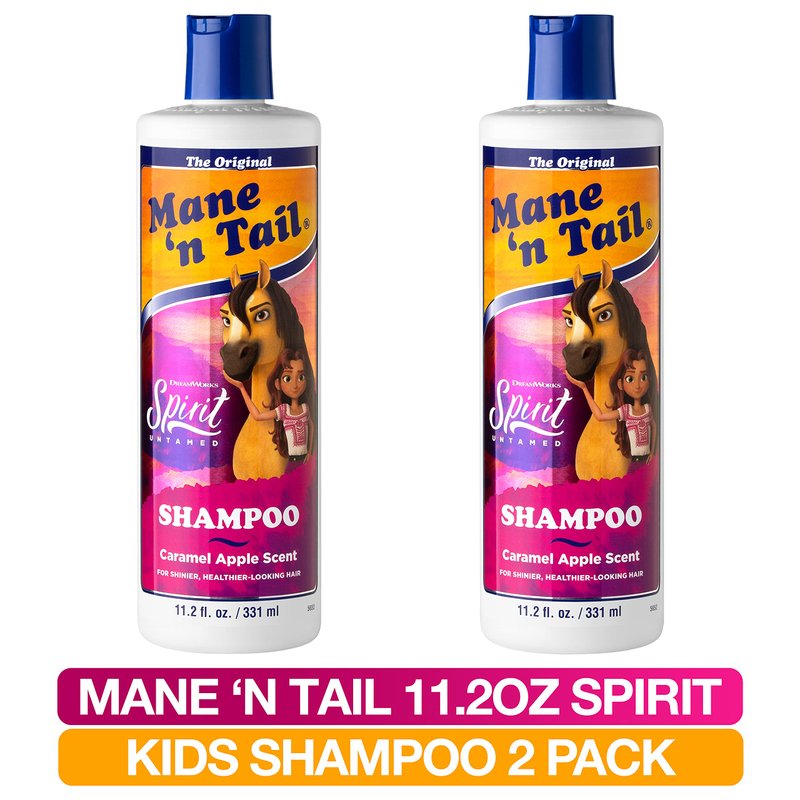 Mane 'n Tail's Spirit Untamed Caramel Apple Scented Shampoo is the only shampoo you'll need for bath time. Two Bottles 11.2 oz each Made in the USA by a family-owned company, Straight Arrow Products, Inc. your family can rest assured that this product is made with the finest ingredients. Discover the Spirit of Great Hair with this great lathering, gentle cleansing shampoo that will transform your hair into soft, silky, clean flowing hair.