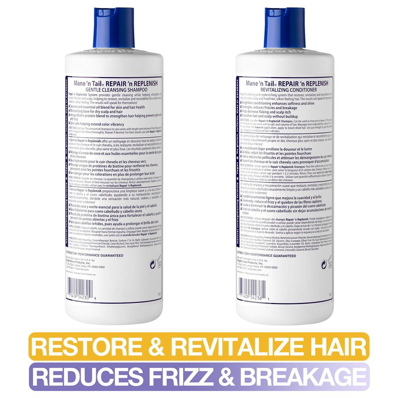 Mane ’n Tail Sulfate Free Repair ’n Replenish Gentle Cleaning And Replenishing System (15.2 Oz Each)