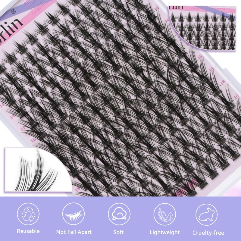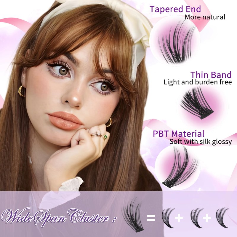 - 【Upgraded Material& Reusable】This latest lash clusters use the upgraded PBT material. There are two advantages, one is the super-soft touching without any plastic feeling but with silky gloss, and the other is the excellent shaping stability, allowing eyelashes to maintain their shape for a long time. If properly cared, the eyelash clusters can be reused.