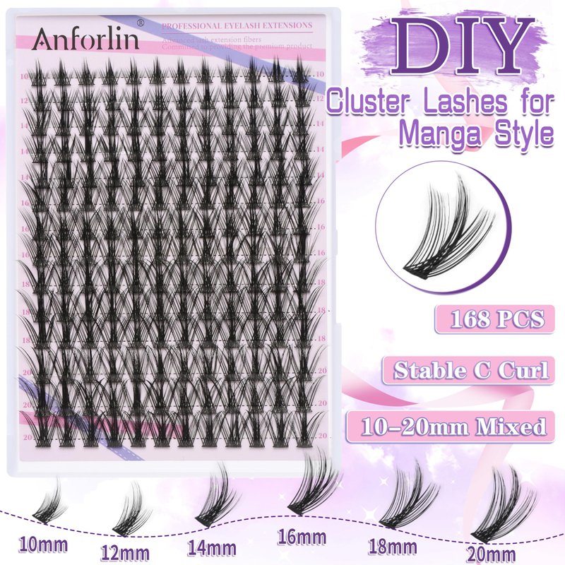 Manga Lashes 10-20mm 168 Pcs Manga Lash Clusters C Curl Anime Natural False Eyelashes Fairy Individual Lashes Thin Band Spiky Lash Clusters DIY Cluster Eyelash Extensions at Home, by Anforlin