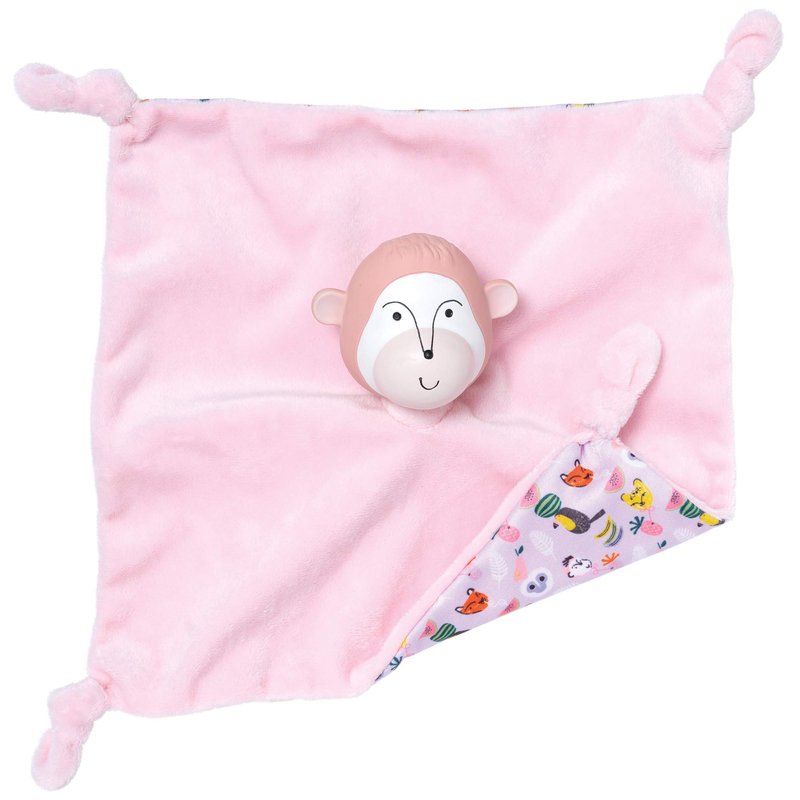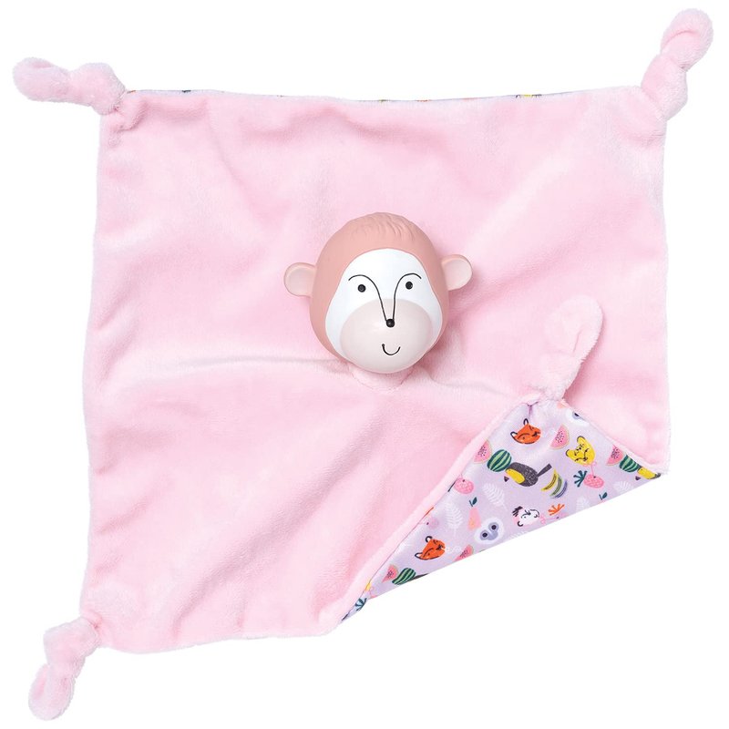 - MONKEY THEMED ANIMAL BLANKIE: Snuggly-soft fabric from Momo Monkey blankie provides comfort while knotted ends are great for teething.