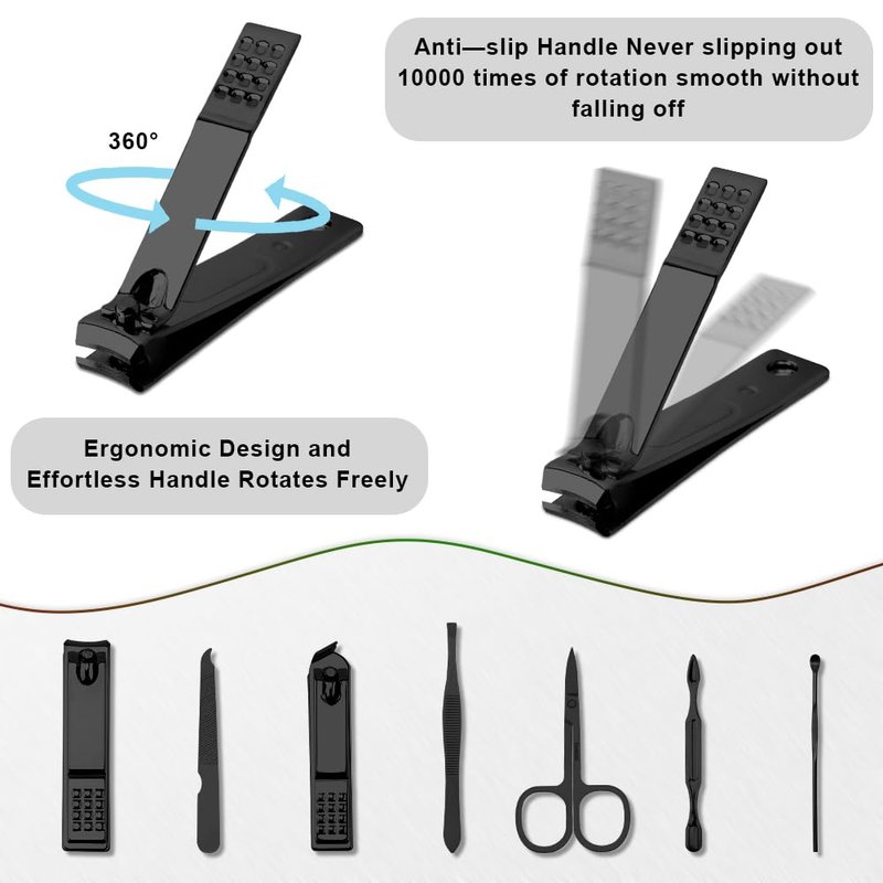- Multifunctional kit: Containing many tools, to meet your different demands.These Manicure Kits Contains a nail clipper, diagonal nail clipper, eyebrow scissors, eyebrow tweezers, ear pick, nail file and a dead skin fork. Including hand care,facial care, and foot care, This Manicure Pedicure set has every thing you need