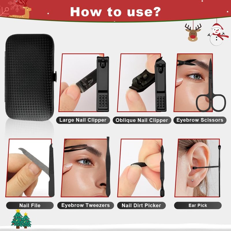 Manicure Kit Christmas Stocking Stuffers for Men - Manicure Set, Nail Clippers Kit, 7 Pcs Manicure and Pedicure Kit, Black Nail Care Kit Christmas Gifts For Men Dad Husband Boyfriend Father Women Mom