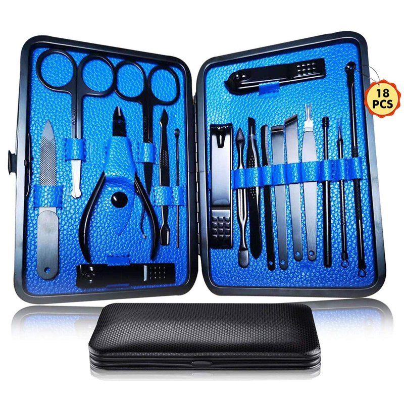 Manicure Pedicure Kit Nail Clippers Set 18 in 1 High Precision Stainless Steel Cutter File Sharp Scissors for Men & Women Fingernails & Toenails Vibrissac Scissors with Stylish Case (Blue_18in1)
