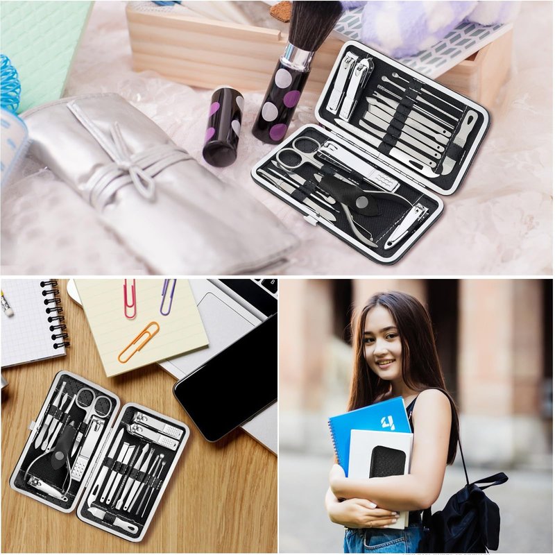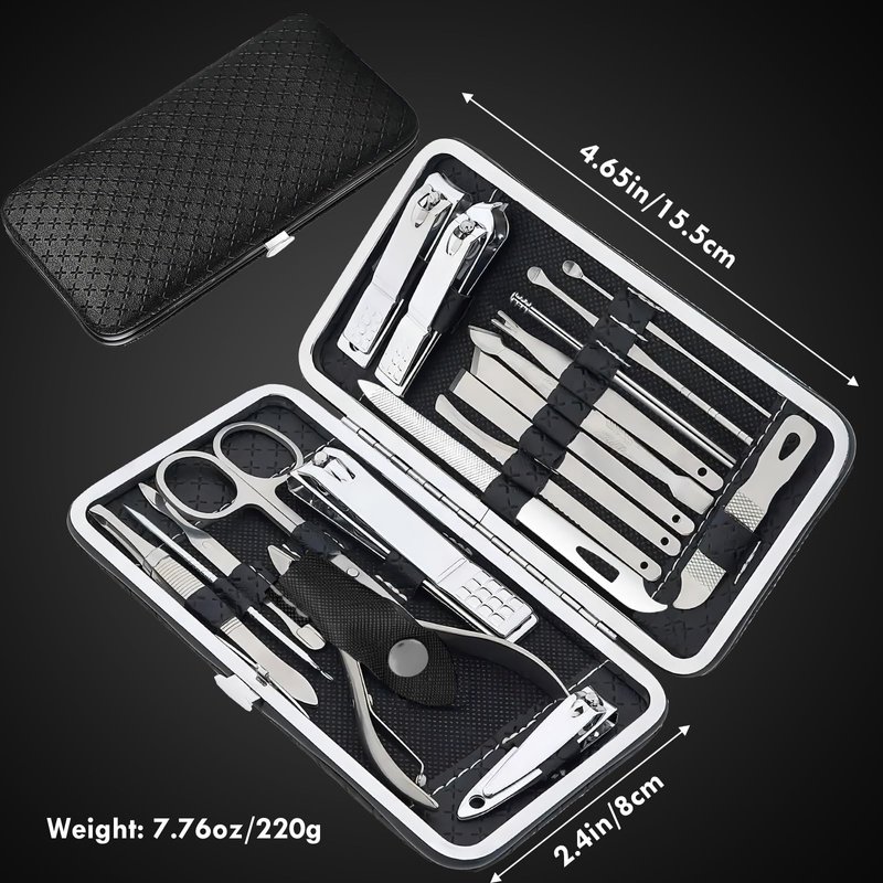 - Get your hands on this ultimate grooming tool kit and improve your personal care routine. Ideal for giving, the 19pc Manicure Set is not just a purchase but an investment in quality and elegance. Order now and experience the luxury of professional grooming at your fingertips.Shipping Summary: