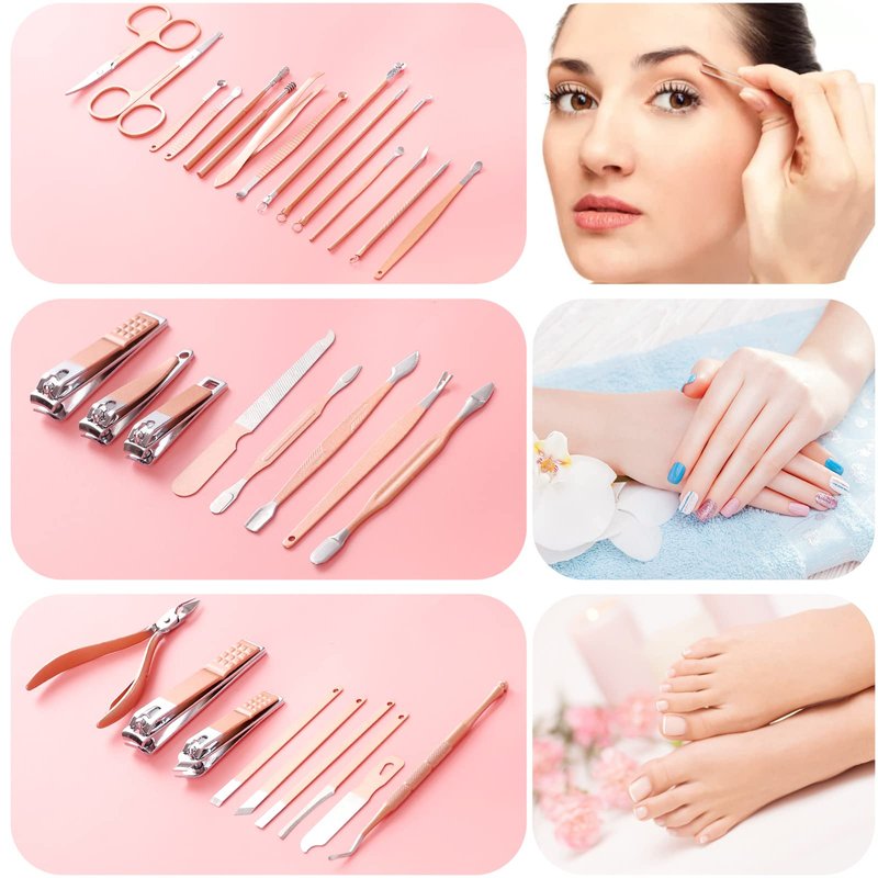 Manicure Set Pedicure Kit Womens Nail Clippers Set 32 in 1 Professional Grooming Care Tools Nail Kit Including Facial, Fingernails and Toenails Care with Travel Case Women (Rose Pink_32 in 1)