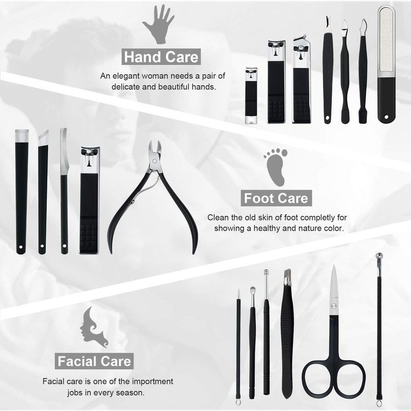 - ❤ MULTI-FUNCTION: The function of most nail clippers set is centered on trimming nails while our kit has a variety of functions including hand care, foot care and facial treatment .The new tools include mini nail clipper for kids, Acne bowl needle and spiral ear spoon that can meet your all kinds of care needs in daily life.