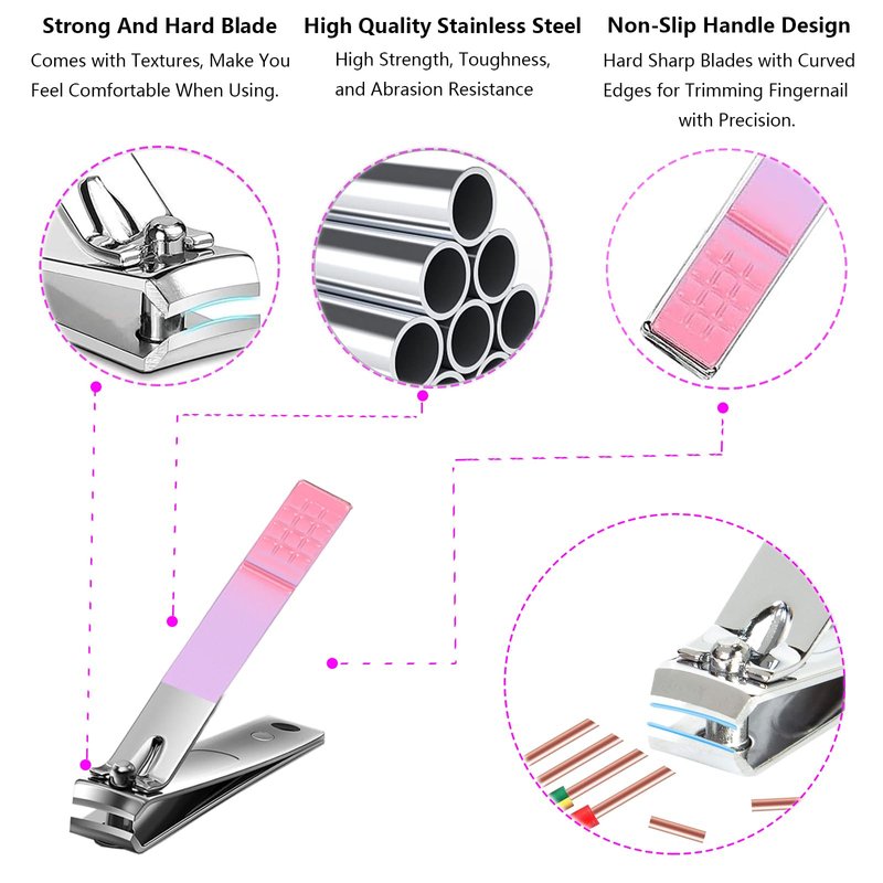 - [Sturdy & Updated Nano Glass Nail File ] This nail clipper set which has 6 tools is made of high quality stainless steel. It is beautifully colored, sturdy and wear-resistant. Nail file is made of high density nano glass, which is highly recommended by dermatologists as a good nail tool and will give your nails a smooth glassy shine after use! No more need for clear nail polish and you can have glossy nails like glass.