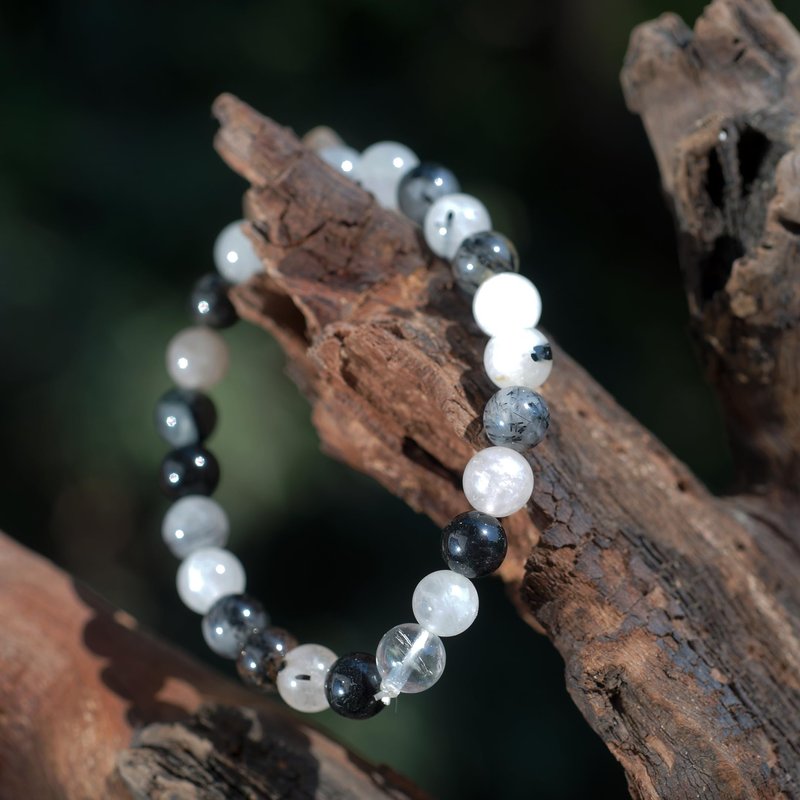 Manifestation Bracelet- Handmade Natural Black Rutile Bracelet - Natural Stone Yoga Bracelet - Gemstone Beaded Stretch Bracelet 8mm - Stone Bracelet