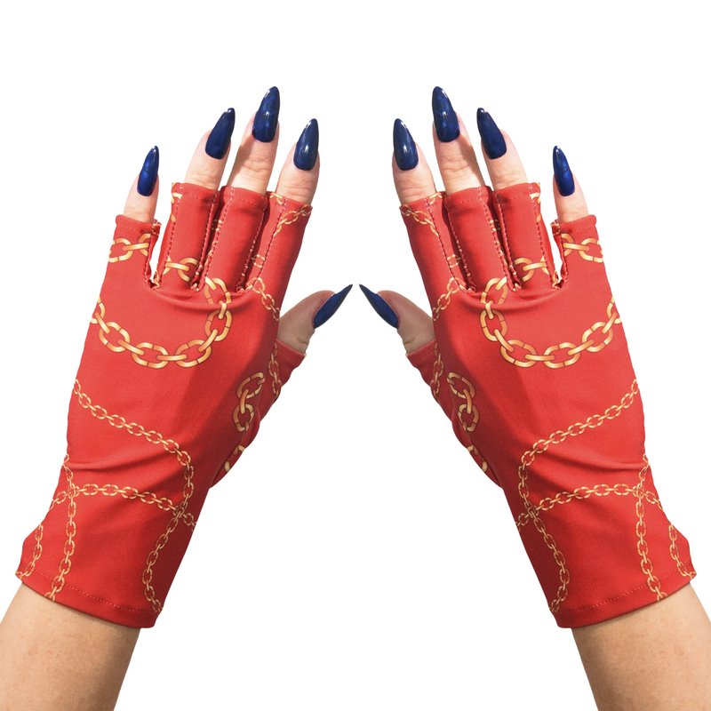 ManiGlovz - The ORIGINAL UPF 50+ UV Light Protective Nail Gloves | Gel Manicure Gloves and Anti UV Fingerless Gloves for Women | Can be Used as Sun Protection Gloves for Driving | Chain of Love Print