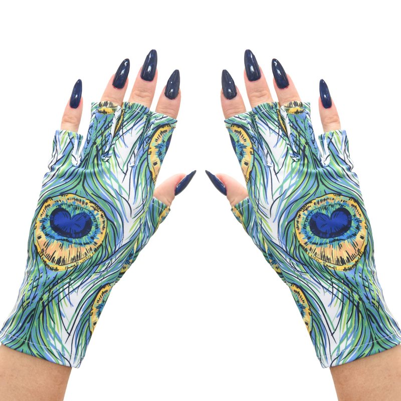 ManiGlovz - The ORIGINAL UPF 50+ UV Light Protective Nail Gloves | Gel Manicure Gloves and Anti UV Fingerless Gloves for Women | Can be Used as Sun Protection Gloves for Driving | Peacock