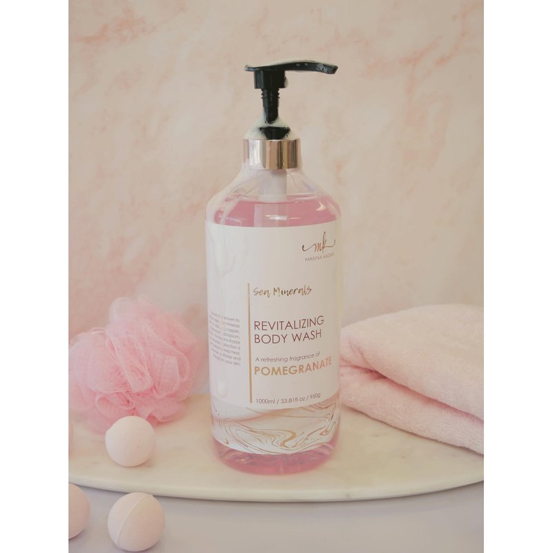 Introducing the Manna Kadar Sea Minerals Revitalizing Body Wash in Pomegranate! Immerse yourself in a luxurious bathing experience with this invigorating body wash. Formulated with the finest sea minerals, it deeply cleanses and nourishes your skin, leaving it feeling refreshed and revitalized.