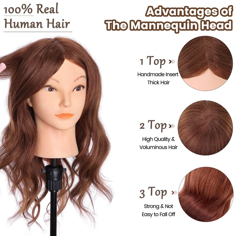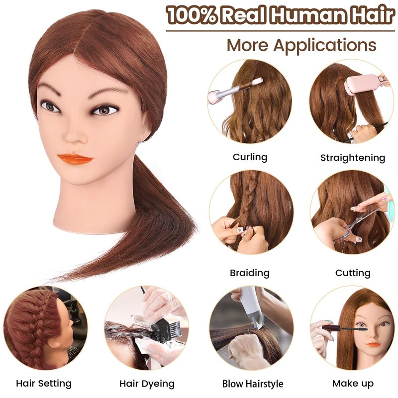 - 🌹【Real Human Hair】Made from a blend of 100% real human hair, this mannequin head can be curled, straightened, and braided to your liking. It's the perfect tool for makeup artists, hairdressers, and cosmetology students to practice their skills.