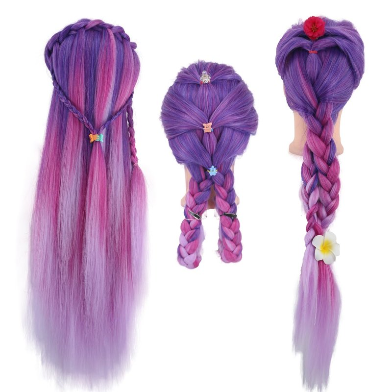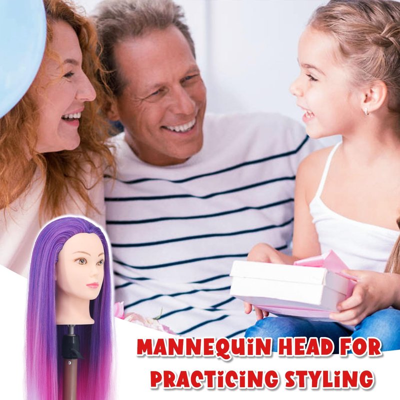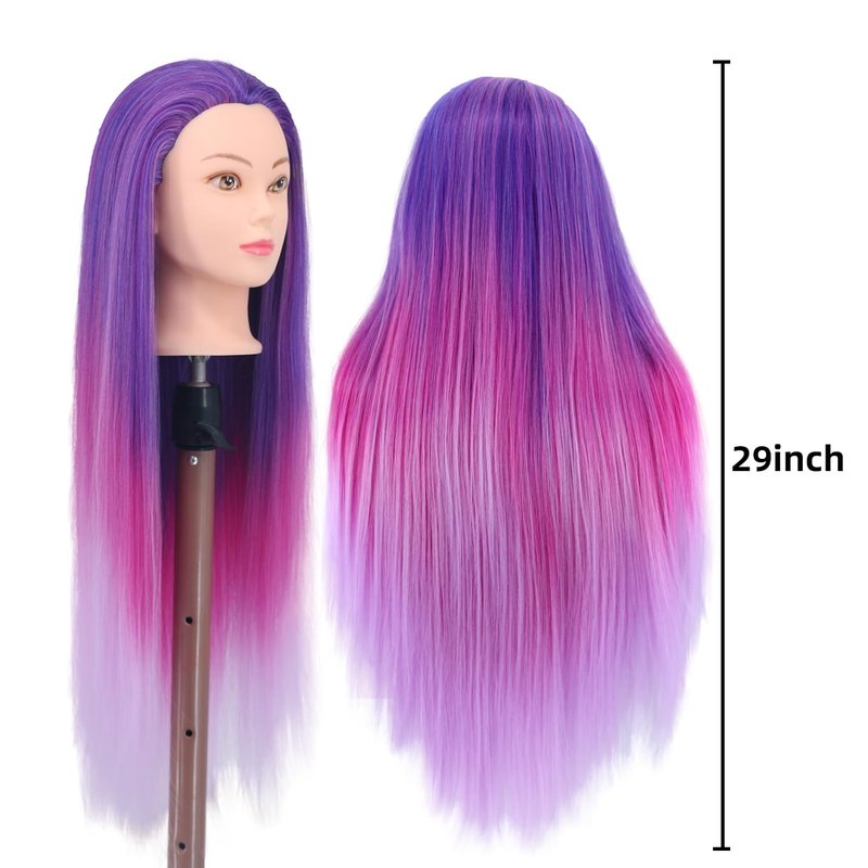 Mannequin Head with Hair, 29'' Manikin Head with hair Cosmetology Mannequin Head for Hair Styles Hairdressing Practice Training Doll Heads with Clamp Holder and Braiding Kit (Mixed Purple)