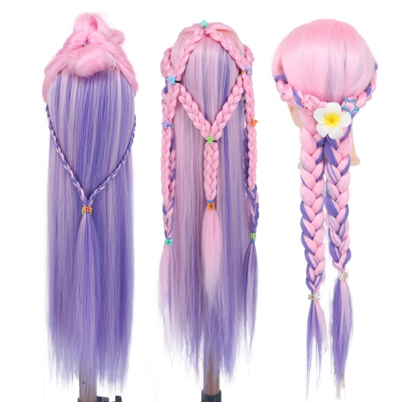 Mannequin Head with Hair, Eumos 29'' Doll Head for Hair Styling Training Head Manikin Practice Cosmetology Doll Head Styling Hairdressing Training Braiding Heads with Clamp Holder (Pink Purple)
