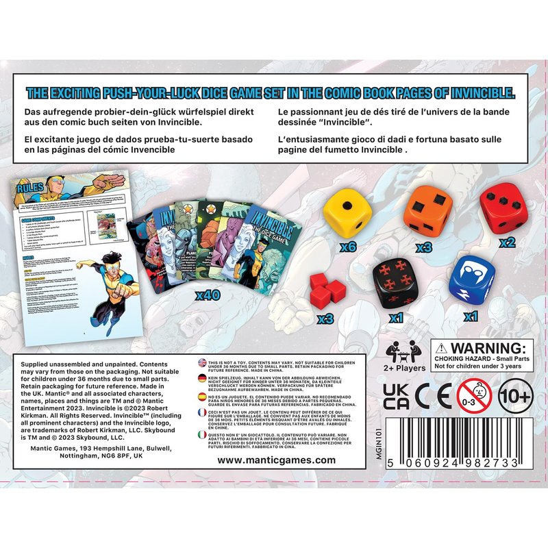 - IMMERSIVE GAMEPLAY: The exciting push your luck dice game set in the comic book pages of Invincible.
