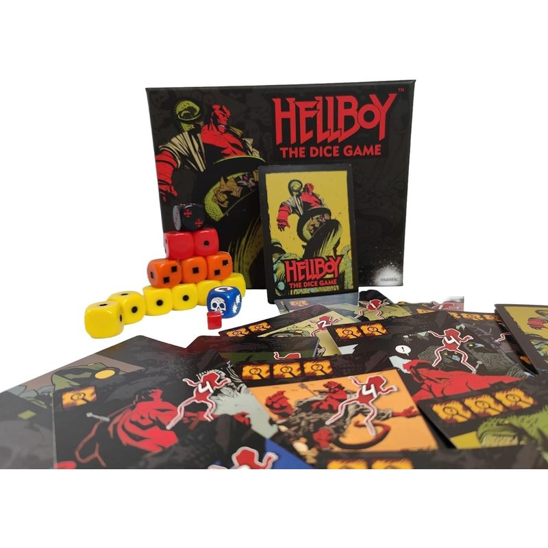 - HELLBOY DICE GAME: Take on the role of a B.P.R.D. recruit exploring a mysterious location. It’s training day for B.P.R.D agents as you battle frog monsters, Rasputin and more in this fun, fast-paced, and fiendish push-your-luck Hellboy game.