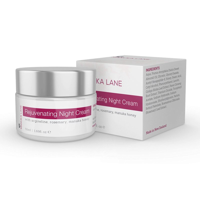 - ENJOY A SPA-LIKE EXPERIENCE IN YOUR OWN HOME. Manuka Lane's Rejuvenating Night Cream carries a mild, soothing scent of Rosemary oil and all natural New Zealand Manuka Honey to softly carry away the cares of the day, while our powerful formula soothes and restores tired skin. Effective on crows feet, eye bags, fine lines, and providing a general youthful appearance.