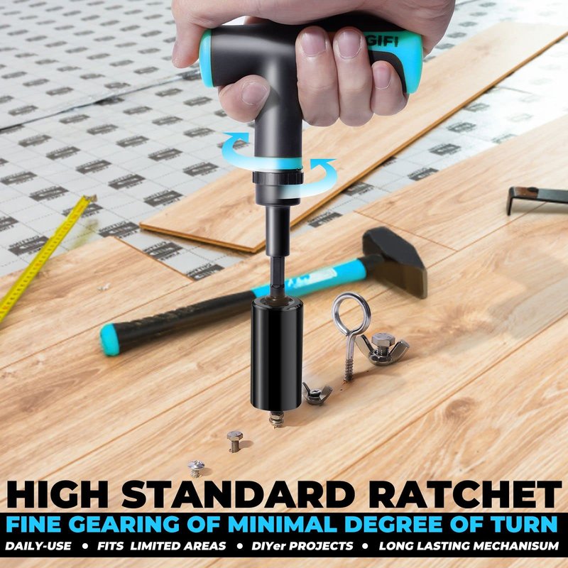 - đăRatchet HandleăThe magnetic screwdriver set provides three settings: clockwise and counterclockwise ratchet and fixed in the locked position. Thanks to its freely rotating base, the T-handle ratchet drive allows direct pressure to be applied when unscrewing objects.
