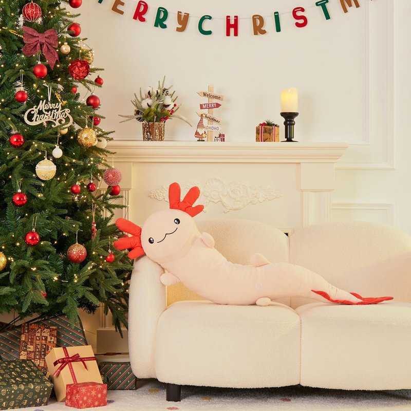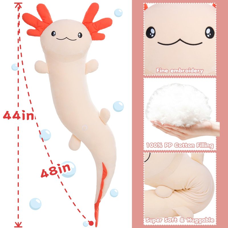 - Holiday Present:The long soft axolotl plushies meet your need for large stuffed animals.Boys girls and girlfriend will like cute hugging big body pillow. Rely on jumbo stuffed axolotl toy. The long axolotl plush pillow is a perfect toy presents for Birthdays, Christmas, Mother's Day,Valentine's Day, Thanksgiving