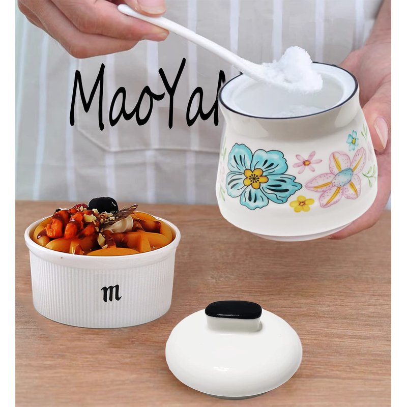 MaoYaMao Ceramic Sugar Bowl with Lid and Spoon Salt container Sugar Holder for Coffee Bar,Home and Kitchen 12oz