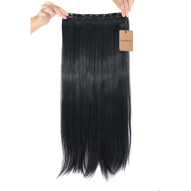 MapofBeauty 24" Long Straight Clip in Hair Extensions Hairpieces (Black)
