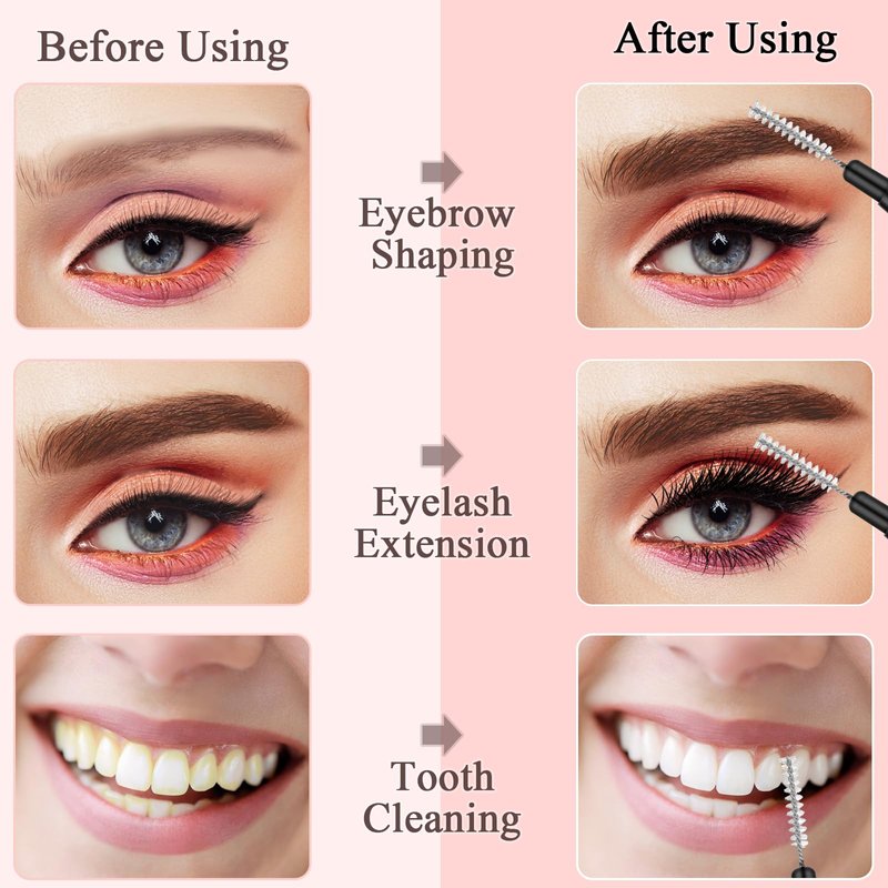 - 【Wider Range of Applications】In addition to beauty, these mascara brushes are also very convenient for cleaning and scrubbing small spaces that fit tightly. You can use them to clean braces, gaps between teeth, dental crowns, and bridges to keep your teeth healthy and white. They are even used to clean small parts in workshops. These high-quality brushes do not shed and are very flexible. You can bend them into any shape you need to touch and clean.
