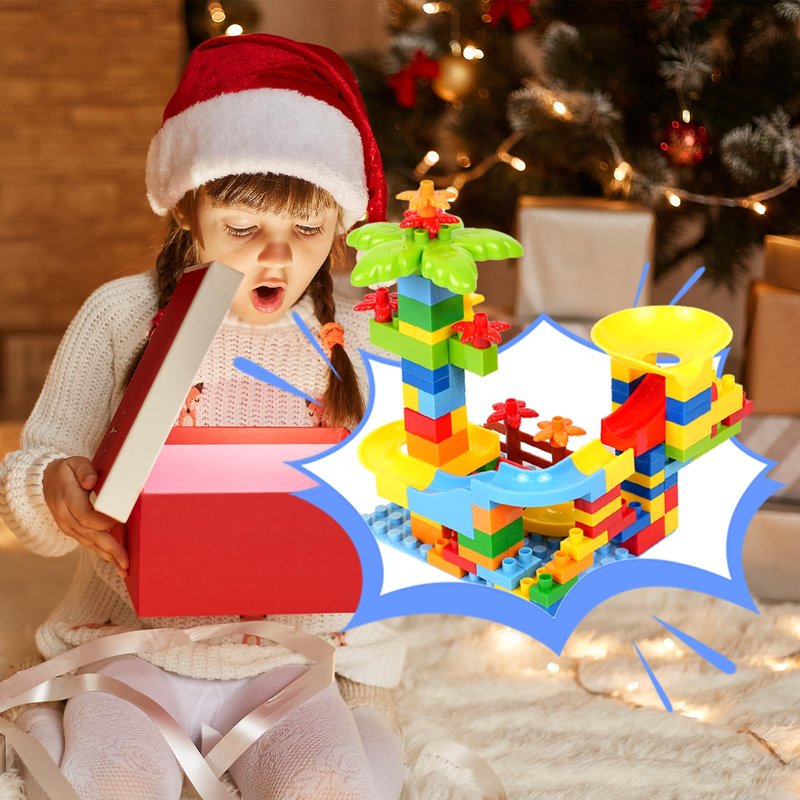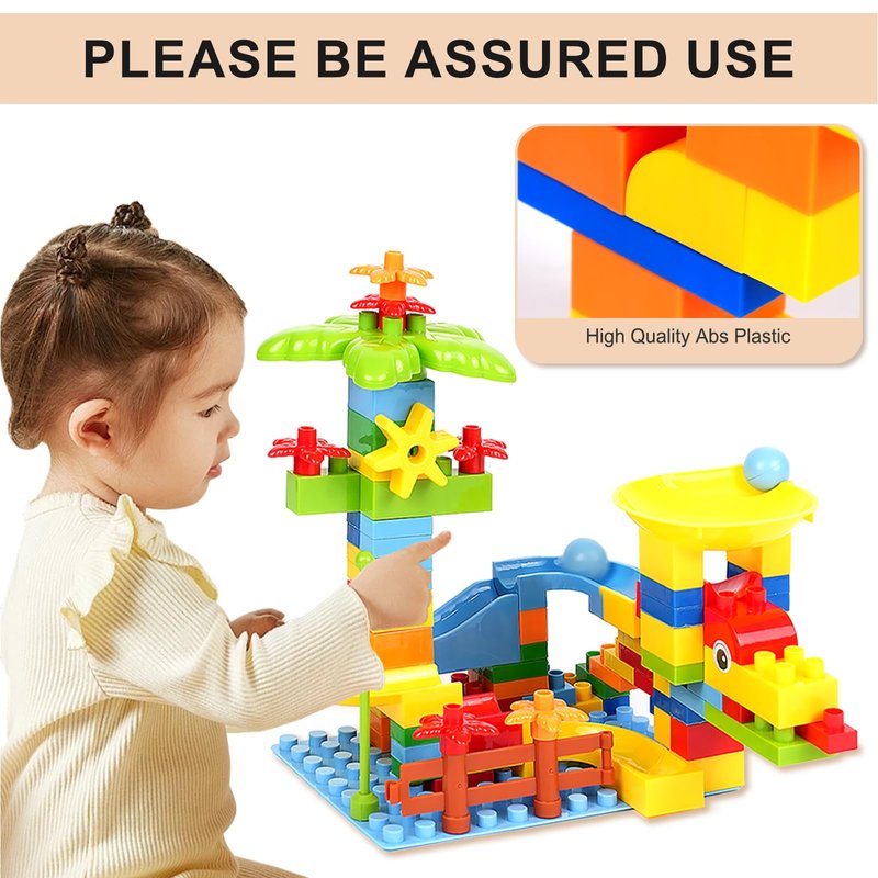Marble Run Maze Track Sets - Educational Building Blocks for Toddlers - STEM Learning Toys for 2-8 Years Old Boys & Girls - Compatible with Big Classic Blocks - Marble Run Fun and Games (01)