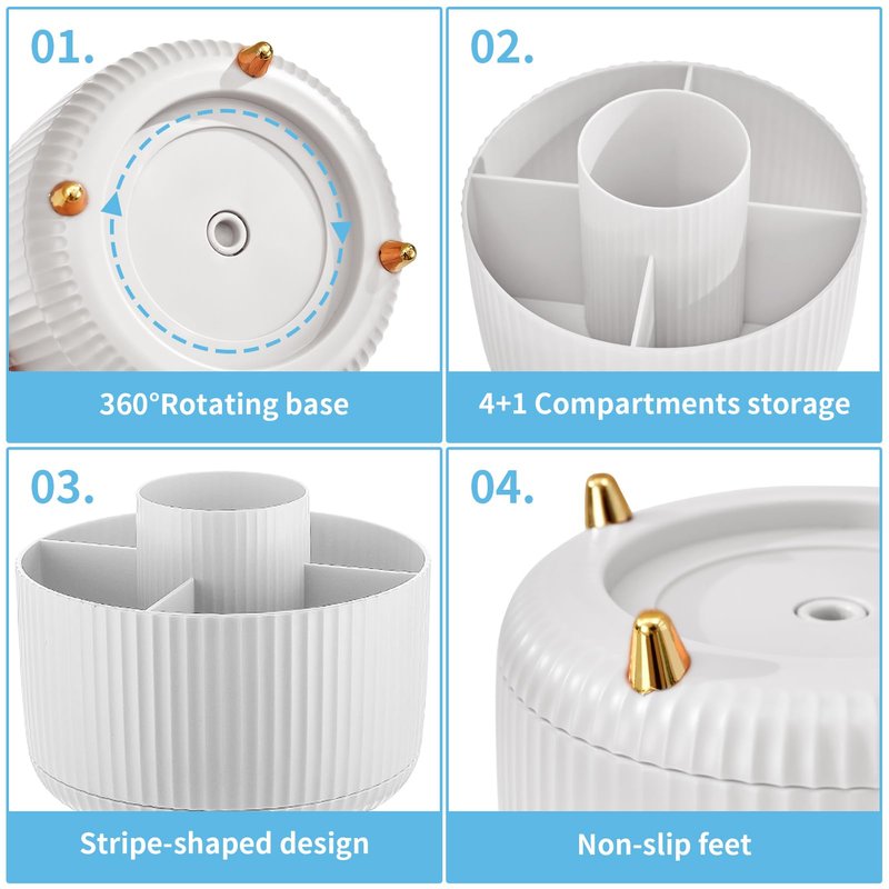 - ✎【Smart 360 Degree Revolving Design】: This desktop organizer can be turned up to 360-degree rotation to the left and right. This storage caddy allows you to keep all of your small items within reach while staying out of your way. You can always get what you want quickly and easily. The product can be bilaterally and smoothly rotated, just turn as you please.