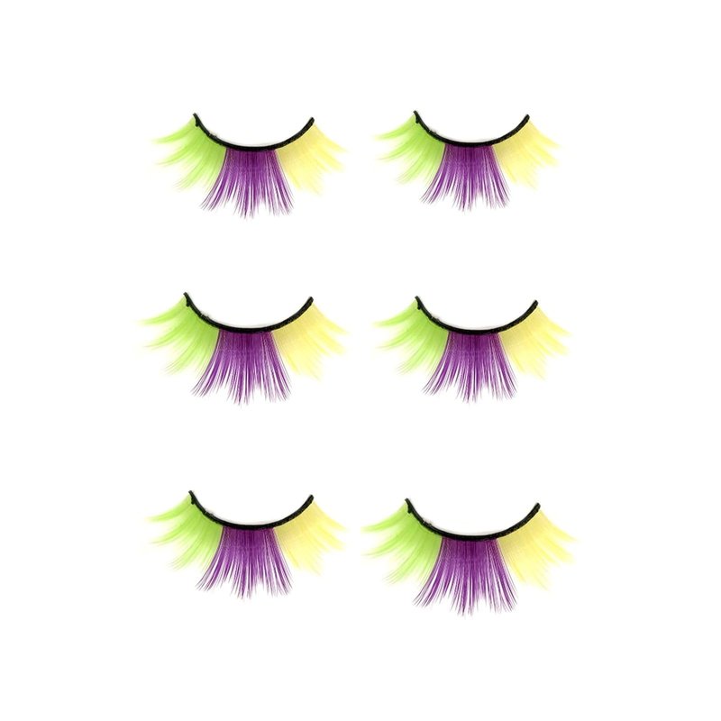 Mardi Gras Eyelashes Purple Green and Yellow Fake Lashes 3D Curl Salon Extensions Strip Pack 3 Pairs Natural Thick Multi-layer Festival Decoration Fake Eyelashes