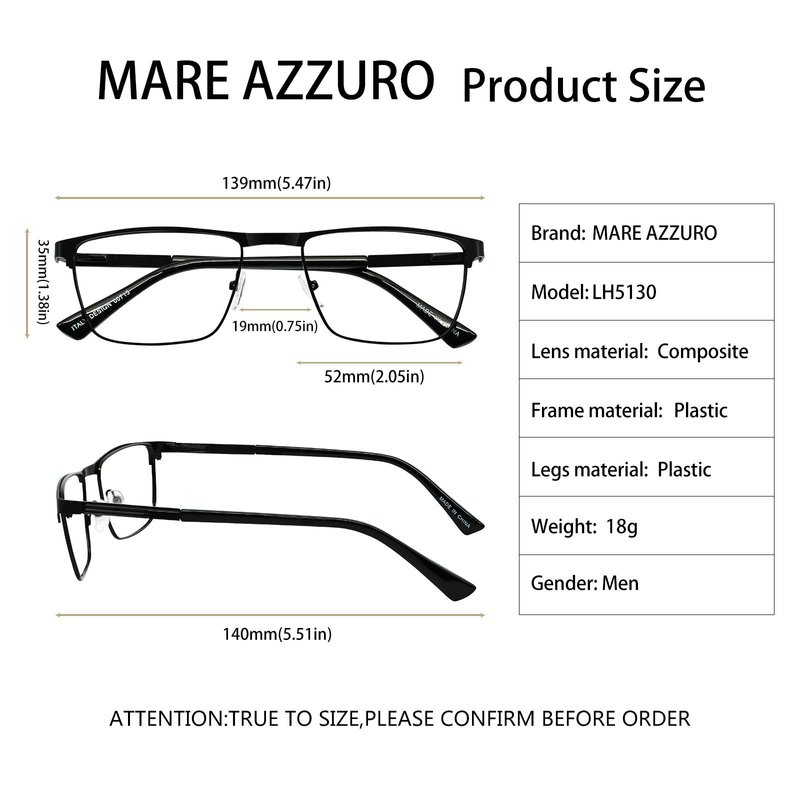 MARE AZZURO Designer Reading Glasses Men Metal Readers 1.0 1.5 2.0 2.5 3.0 3.5 (Black, 1.00)