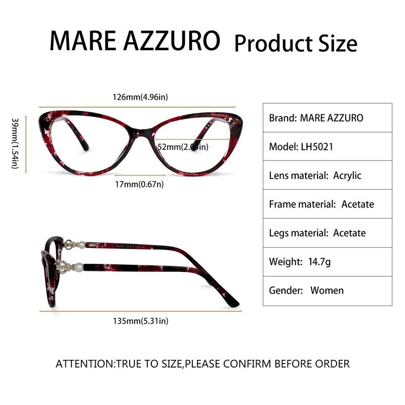MARE AZZURO Progressive multifocal Blue Light Blocking Reading Glasses For Women Cateye (R-Red, 200)