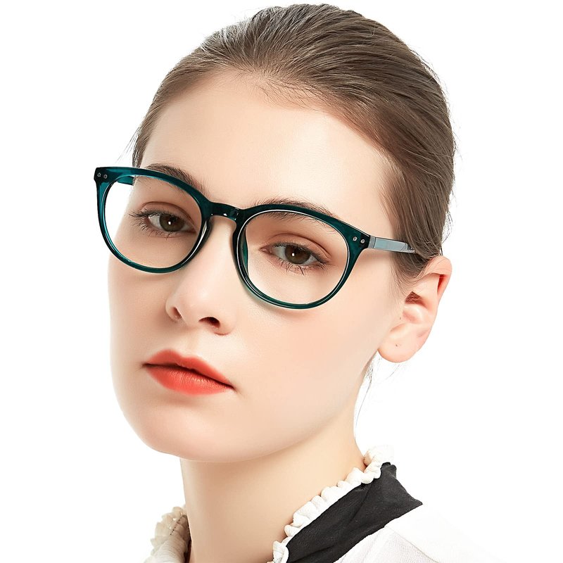 - MEASUREMENT:Lens width:53mm(2.09in),Bridge:17mm(0.67in),Arm:137mm(5.39in), Frame width:129mm(5.08in),Frame height:42mm(1.65in).This stylish reading glasses +6.0x has retro green round shape and has clear lens for reading.