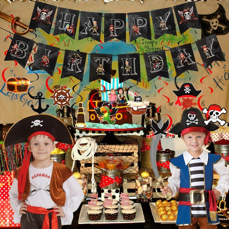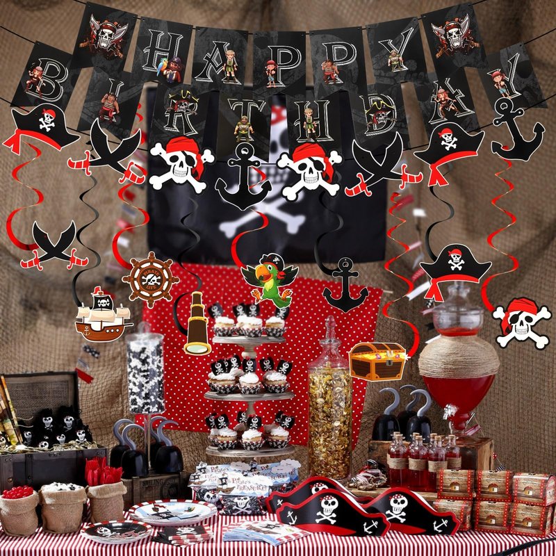 MARFOREVER Pirate Birthday Party Decorations, Pirate Birthday Party Hanging Swirl Banner Decorations, Pirate Birthday Decorations for Men, Boys, Kids Pirate Themed Party Supplies