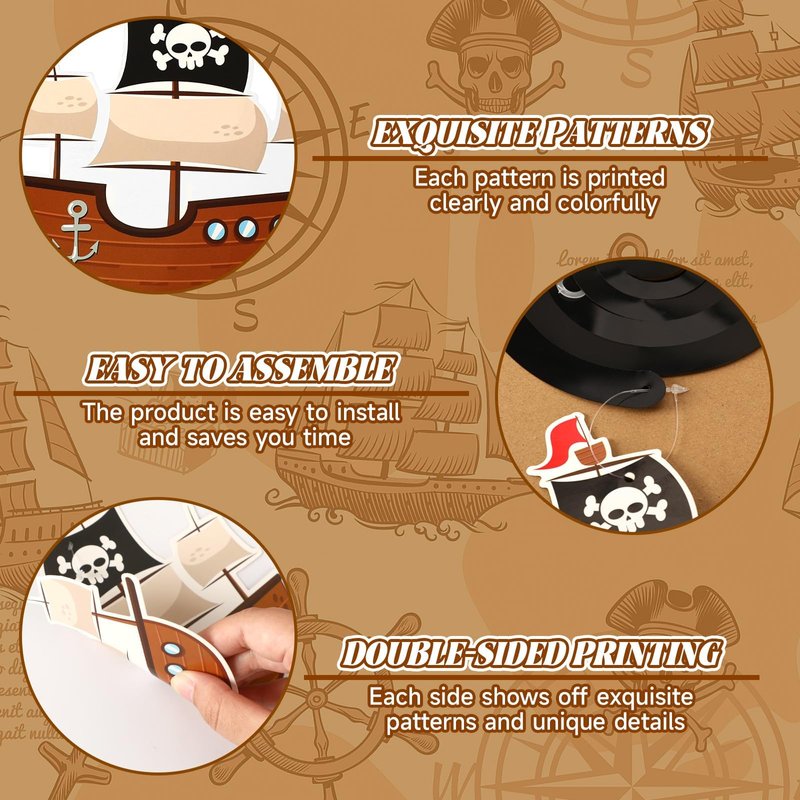 - Good-Quality Material: All pirate banner and pirate hanging decoration are made of good-quality cardboard, with reliable texture, not easy to break, vivid colors and double-sided printing, which can maintain the original beauty and texture even after long-term use