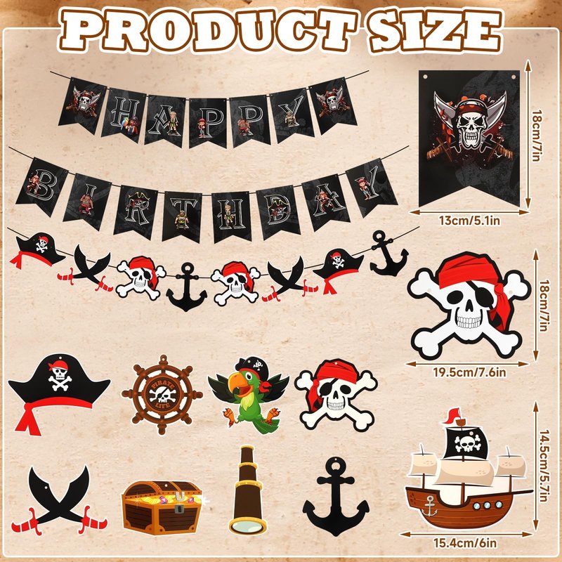 - Widely Used: The pirate party supplies are not only suitable for children's birthday parties, but also ideal for pirate-themed parties, boat parties, amusement parks, school activities and other occasions. These pirate themed party decorations can bring unique visual effects and add interest and excitement to your activities