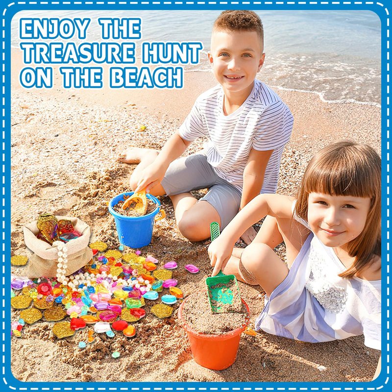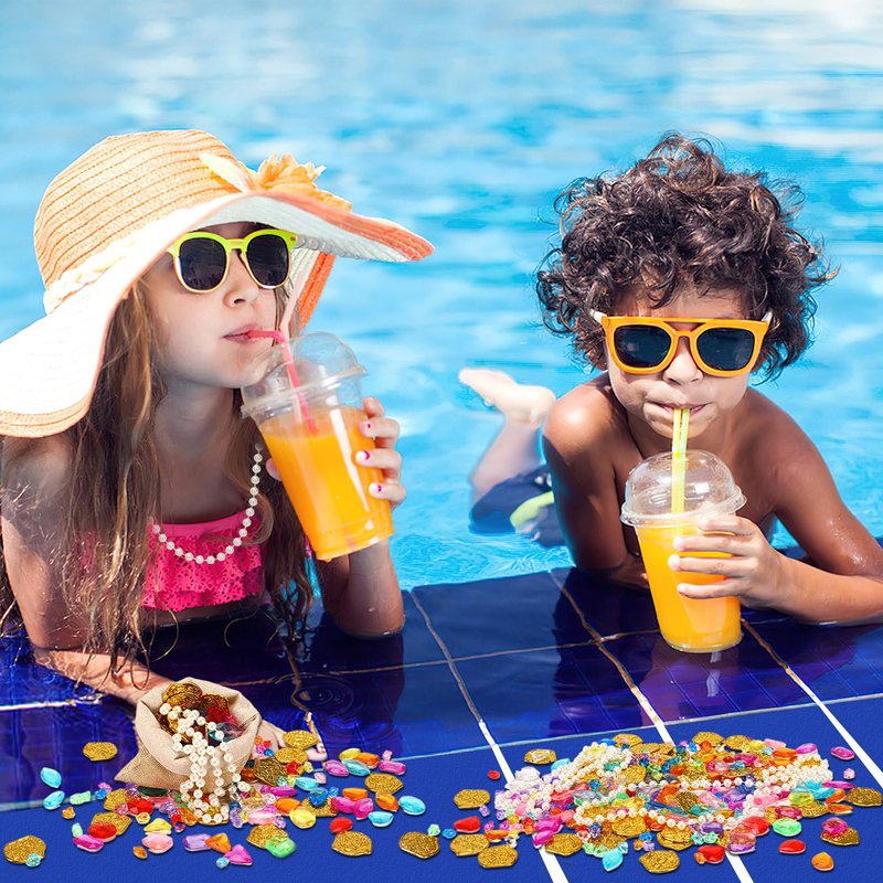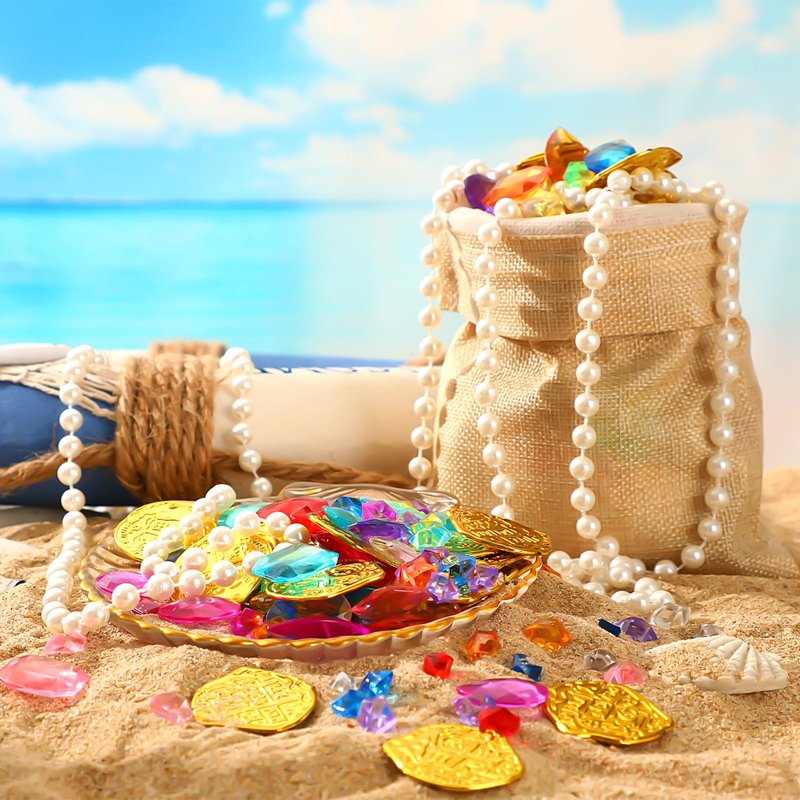 - Pool Sand Toys: You will 190 pool gems, 50 pirate coins, 5 strands of pearl necklaces, 1 drawstring bag, total 246PCS, sufficient quantity and cute designs, enough to meet your pool party, beach sand, pirate party, vase filling decoration needs