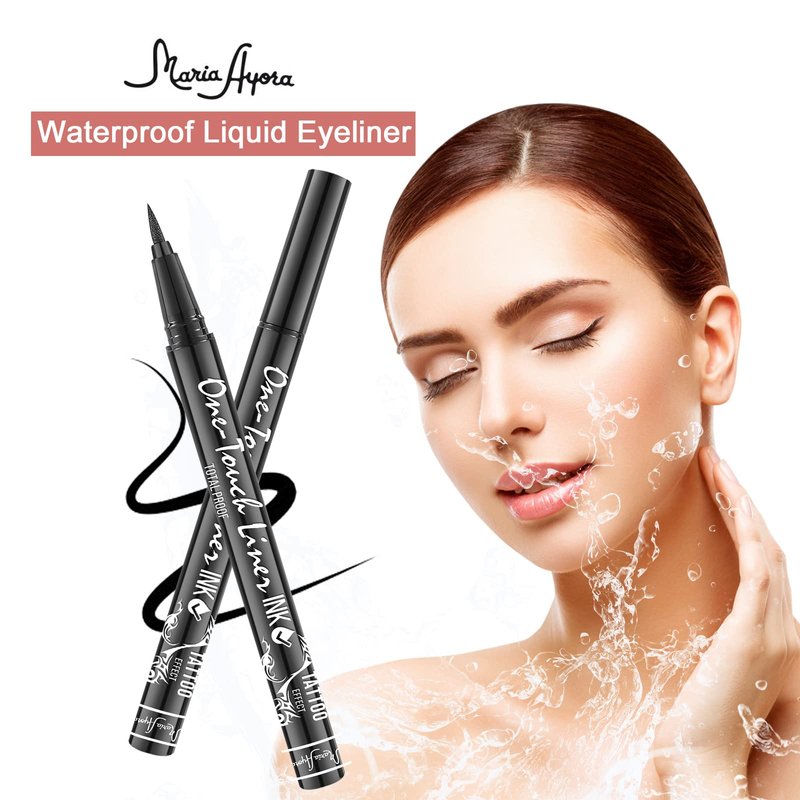 MARIA AYORA Triple Pack of Vegan-Approved Liquid Eyeliner Pens in Classic Black, Tattoo Effect, Quick Dry, Waterproof, Smudgeproof, Long-lasting & Felt Tip Eyeliner pen: Precision Beauty for Women