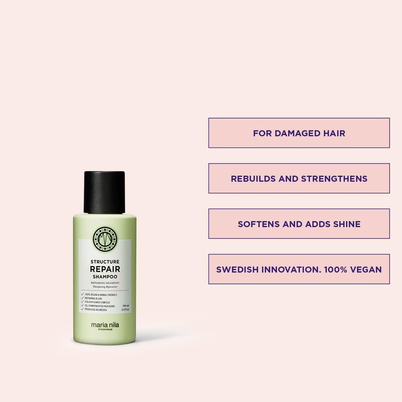 Maria Nila Structure Repair, Shampoo 3.4 Fl Oz, For Damaged & Chemically Treated Hair, Algae Extract Rebuilds & Moisturizes, 100% Vegan & Sulfate/Paraben free